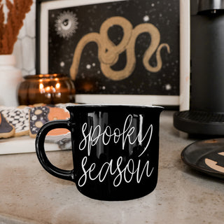 Who says you can't channel Halloween vibes all year round? This sleek black ceramic mug with haunting white graphics is perfect for those who believe spooky season is a lifestyle, not just a holiday.