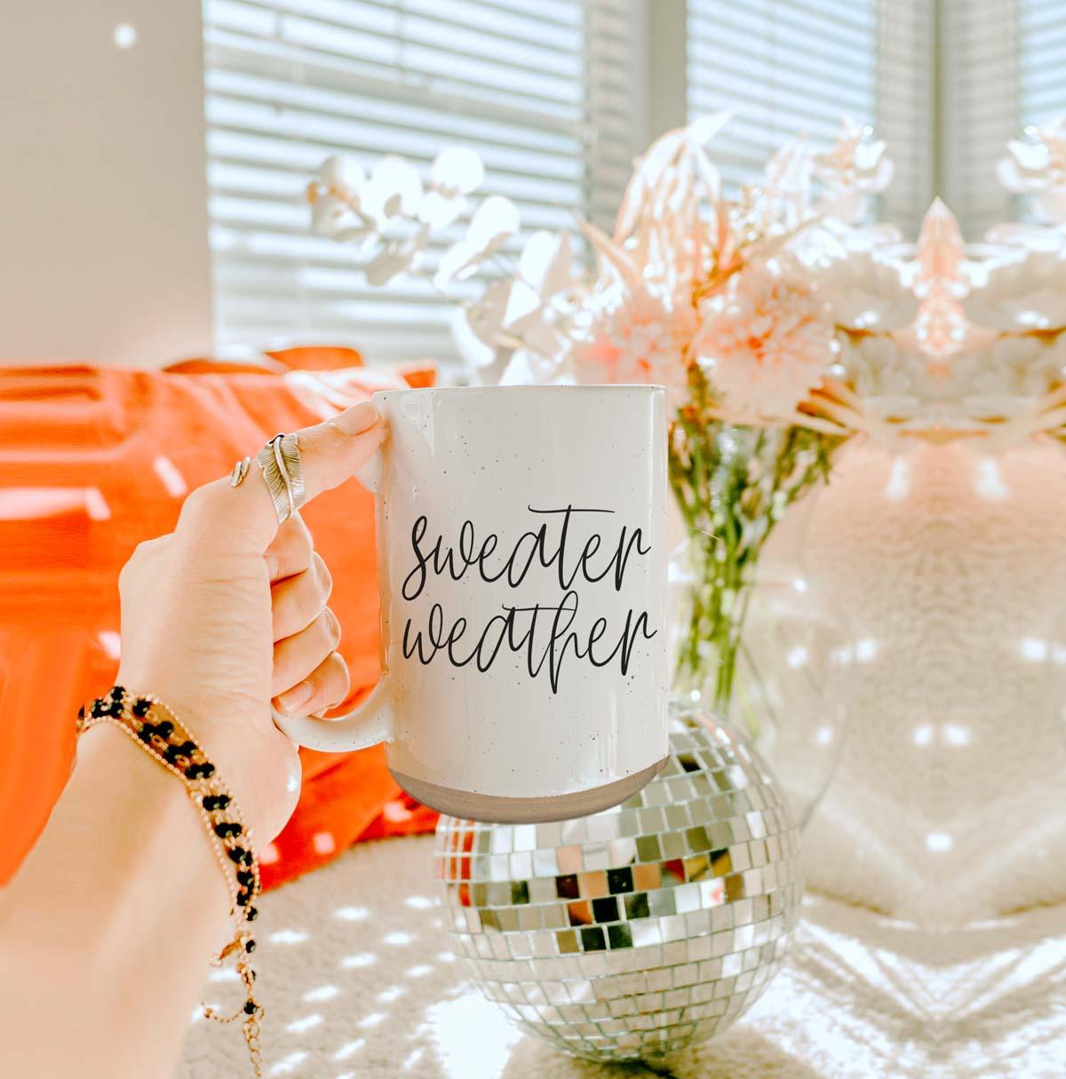 Wrapped in your favorite blanket, mug in hand, as you sip a steaming cup of your favorite beverage and bask in the comforting embrace of sweater weather. Whether it's a piping hot cocoa, favorite coffee, or a fragrant herbal tea, this mug is sure to warm both your hands and your heart.
