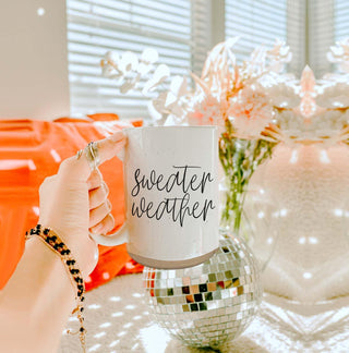 Cozy up and celebrate the chill in the air with our charming "Sweater Weather" Ceramic Mug! A companion for embracing the crispness of autumn or the frostiness of winter.