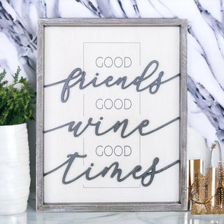 Good news wine lovers! Gia Roma has produced a series of cute wood signs that you would definitely want to have in your collection. This wooden framed sign displays a message saying, "Good Friends Good Wine Good Times"